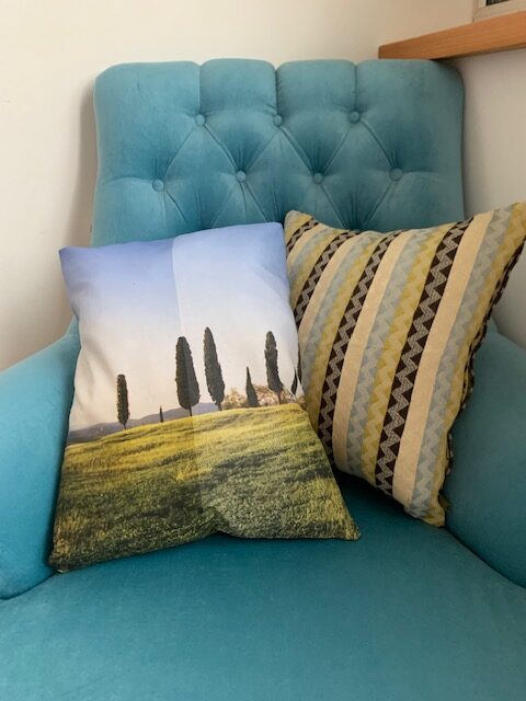 Dekorativni pamučni jastučić Pejzaž u Toskani je moderan, dizajnerski jastuk koji će osvežiti svaki enterijer. Ujedno će vas, u mašti, odvesti na romantično putovanje po Toskani.