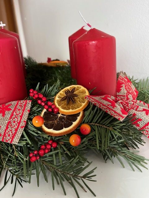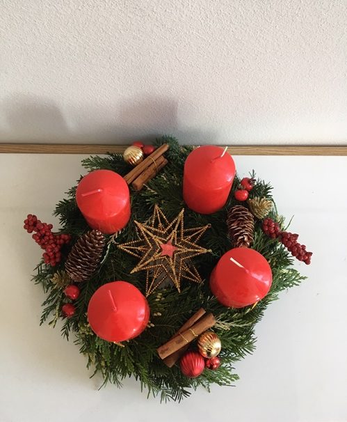 Adventski venac klasični sa crvenim svećama je simbol dolazećih praznika ali i dekoracija za svečani sto. Napravljen je od svežih grančica jele, sa dodatkom dekorativnih sveća i ukrasa. U vreme kada smo svi praktični pa ukrašavamo plastična drvca, ovaj venac će vam doneti sveži miris prave šumske jele, ali i arome cimeta i narandže, jer sve to koristimo za dekorisanje adventskog venca.