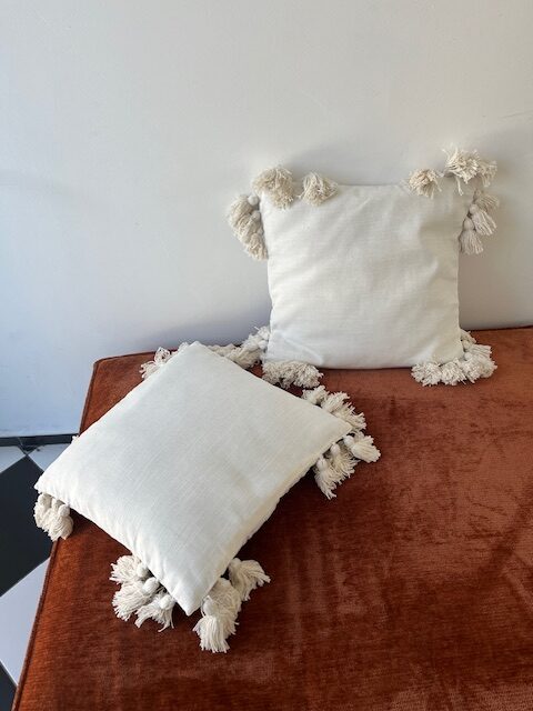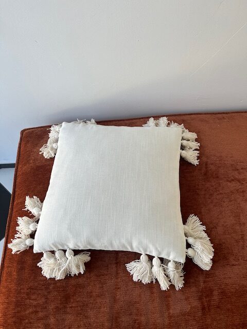 Boho ukrasni jastuk natur sa kićankama je jastuk koji se vrlo lako kombinuje sa drugim jednobojnim ili šarenim jastučićima. Da dekorišete sobu ili vaš kutak za meditaciju.