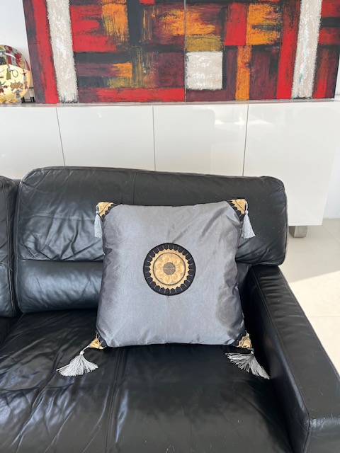 Deko jastuci od kineske svile sa zlatnim vezom su elegantni i egzotični jastuci za jedan elegantan enterijer. Glatka svila, zlatni vez i svilene kićanke daju mu i jednu pomalo boemsku notu. Srebrno siva svila sa zlatnim detaljima, lako će se uklopiti u svaki prostor.