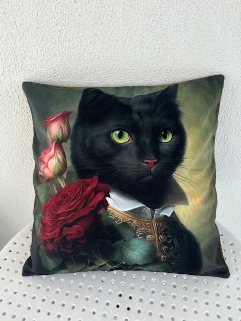 Deko jastučić od pliša Oficir sa ružom je jastuk sa originalanim motivom mačke obučene u oficirsku uniformu kraljevske garde. Ako želite svog mačka musketara, ovo je pravi izbor za vas. Jastuk ima jedno lice, izradjen je od kvalitetnog pamučnog pliša sa kristalnim sjajem. ima jastučnicu koja se skida radi održavanja.