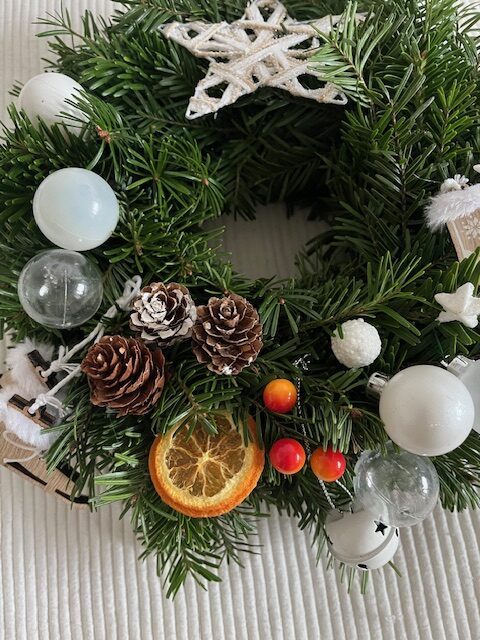 Dekorativni adventski i novogodišnji venac Natur beli
