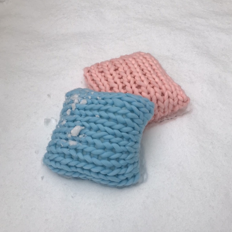 Dekorativni jastuk od debele vune plavi, ručno pleten sa ljubavlju i pažnjom.