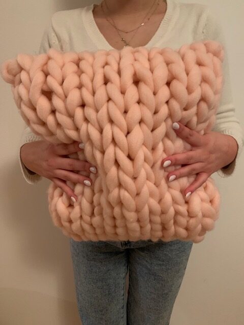 Dekorativni jastuk od super debele vune roze je napravljen sa pažnjom i ljubavlju, za moderne i dečije sobe. Topao i mekan, za grljenje i igru.