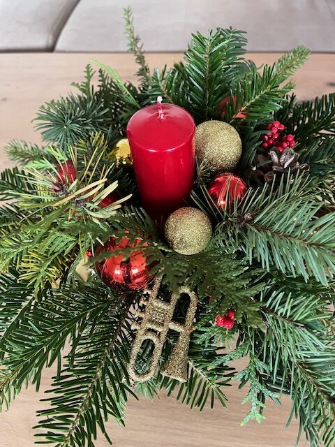 U Aleyi radimo svaku novogodišnju dekoraciju tako da se bojom i oblikom uklopi u vaš prostor. Od izbora posude u kojoj će se nalaziti aranžman, preko boje sveće u centru, pa do kombinacije ukrasa koje stavljamo na njega.