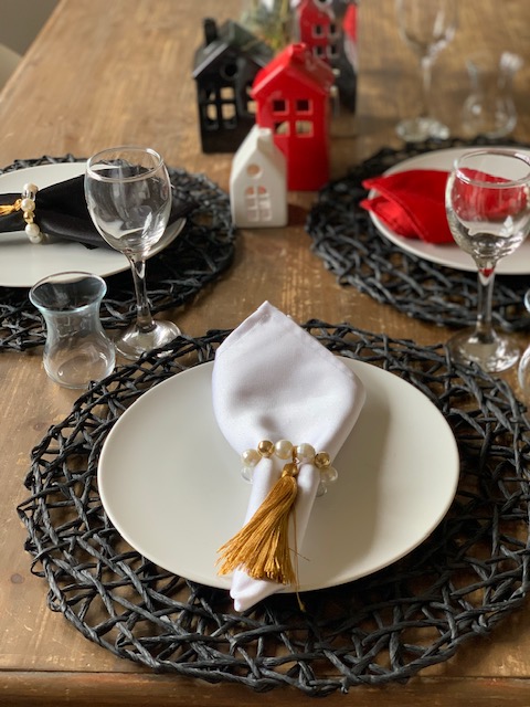 Da biste postigli svečani izgled stola, nekada je dovoljno da na tanjire postavite salvete sa dekorativnim prstenovima.