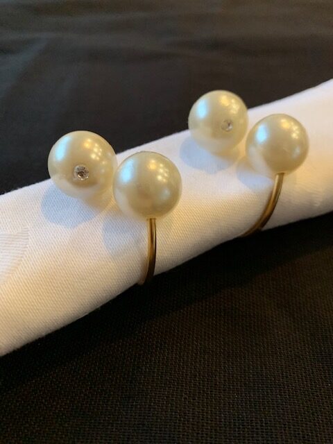 Zlatni metalni prstenčić za salvete sa perlama je klasik medju prstenovima za salvete. Spaja eleganciju i raskoš i prikladan je za svaku svečanu priliku. I za svadbe i za proslave krštenja i i rodjendana.